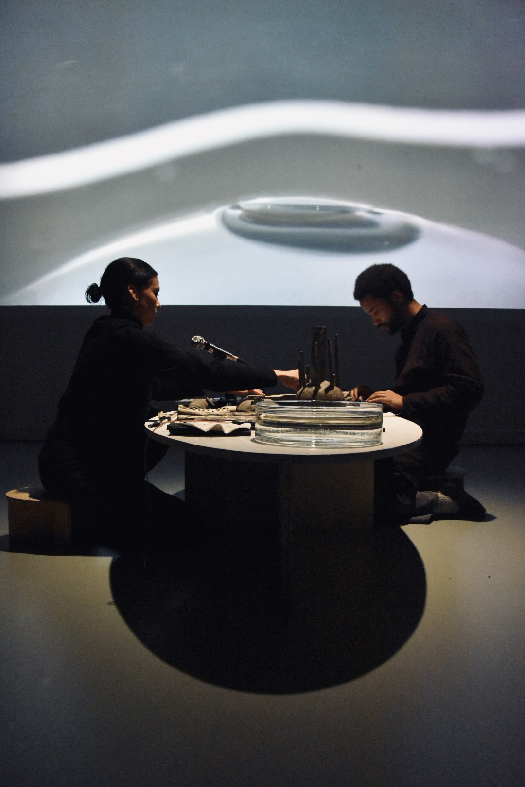 musical and audiovisual exchange. Gradually guiding us back into the now, the artists explore the subtle movements in between various spaces: those that arise from the interplay of different languages, the physical spaces within the sound objects, and the body of the listener and what is shared on a deeper and more intuitive level.